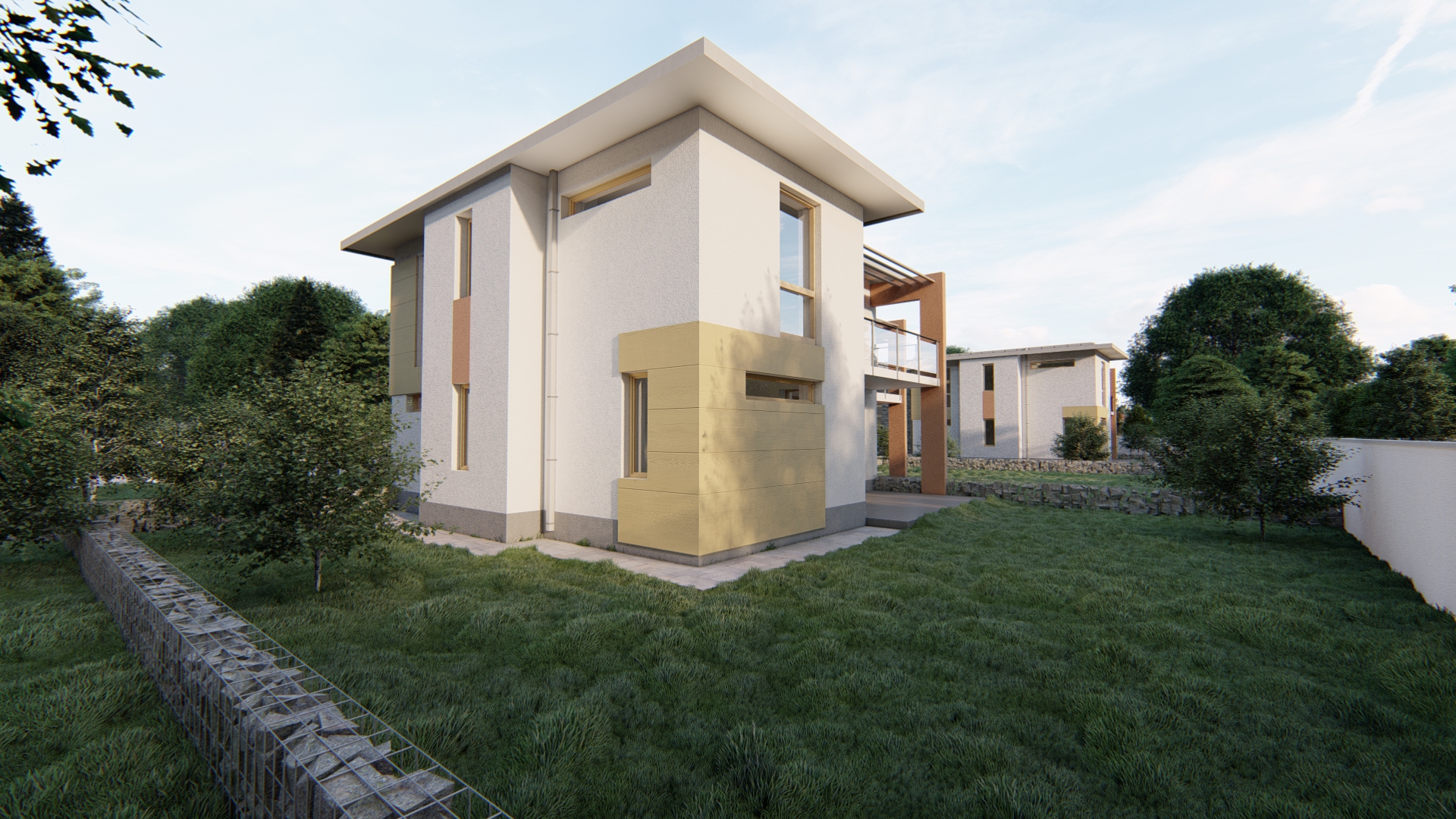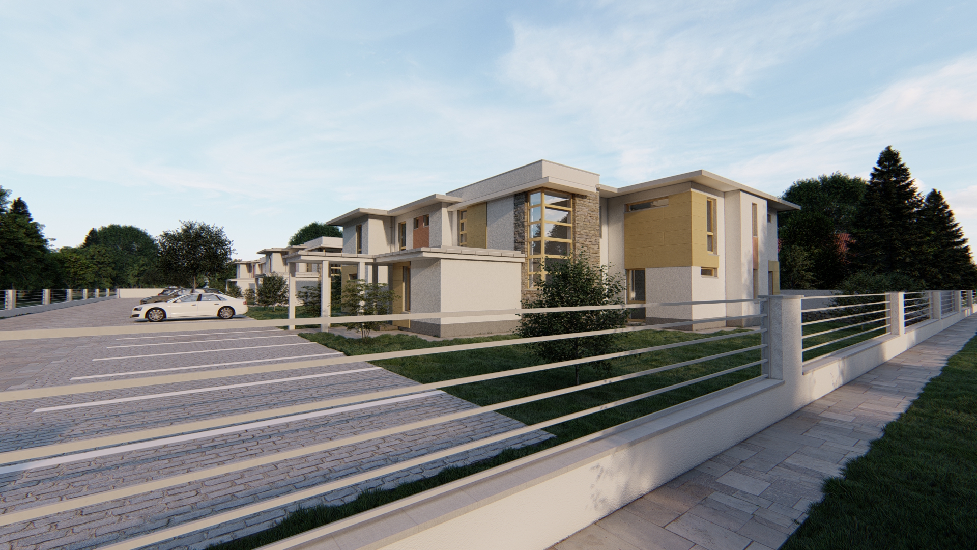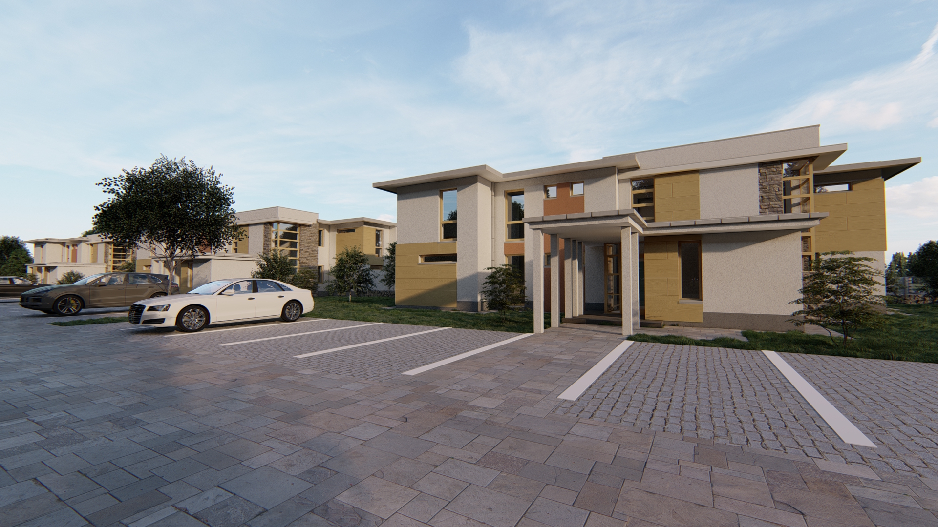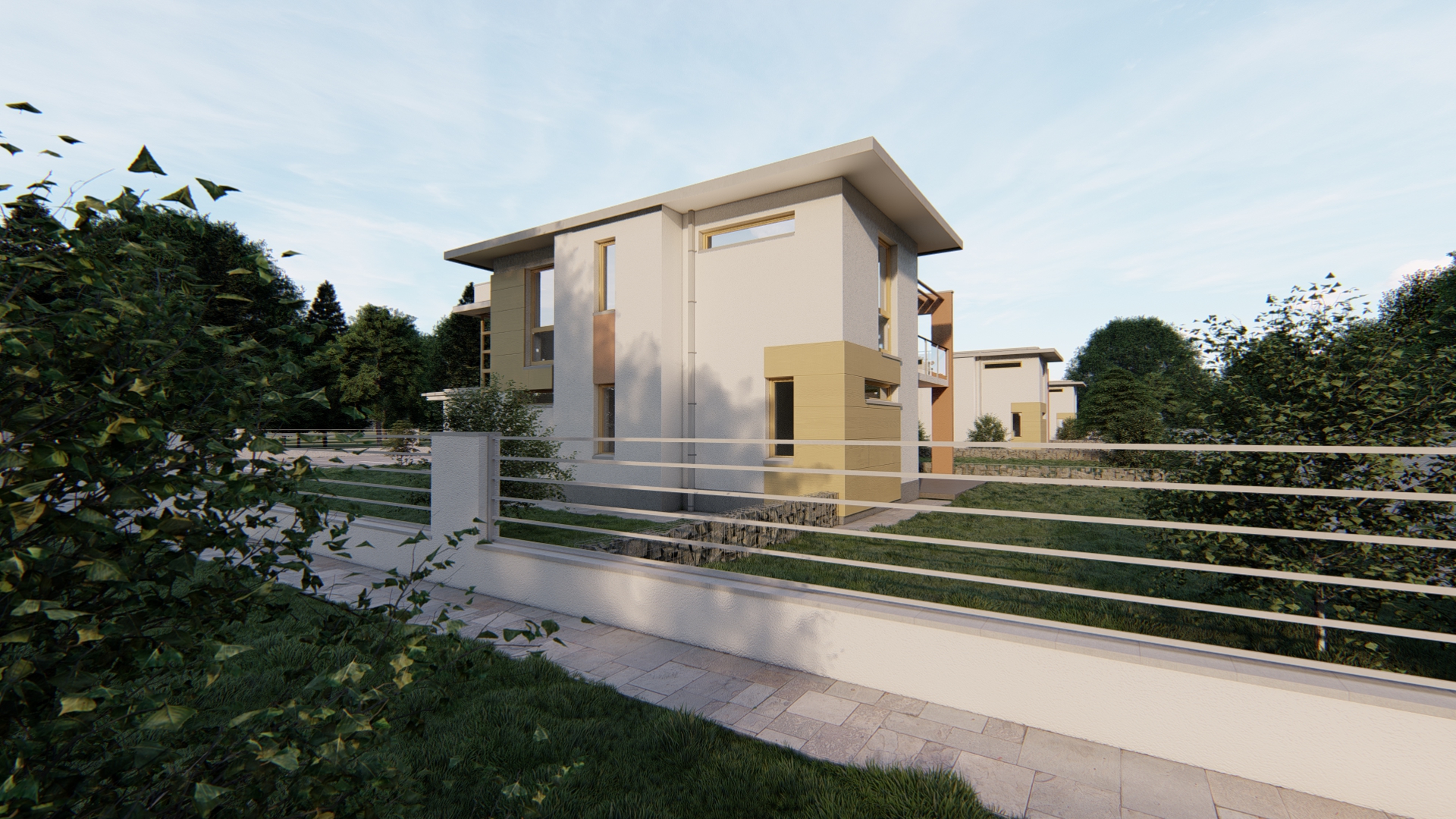 A 12 lakásos dunavarsányi lakóparkunkban az épületek műszaki tartalma a tulajdonosok elvárásai mentén korlátozott mértékben módosult, a lakópark egységes külső megjelenést fog kapni a fotók között látható látványtervek alapján.