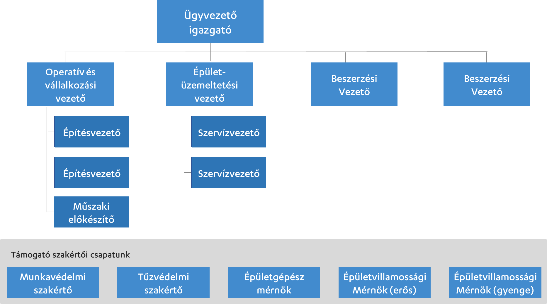 A több éves építőipari, projektvezetési és üzemeltetési tapasztalattal rendelkező vezetőségünk irányítása mellett szervezzük cégünk tevékenységét. Vezetőink állnak partnereink rendelkezésére: